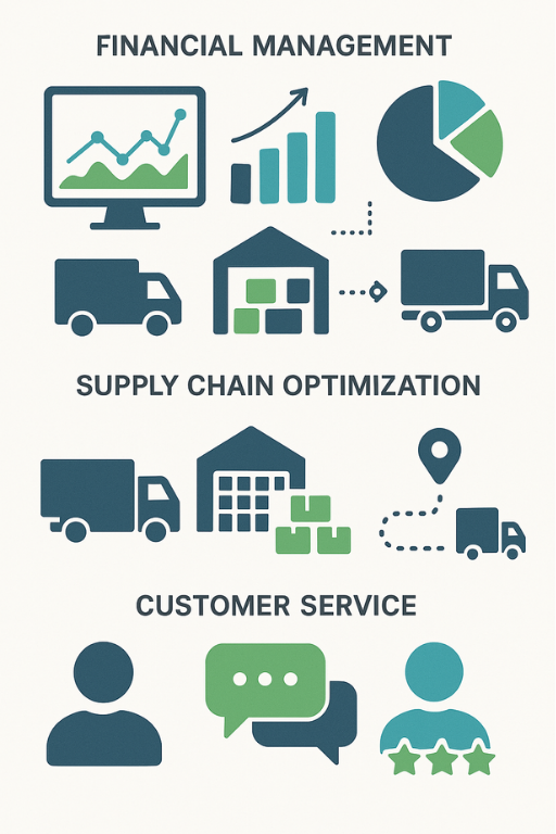 Quản lý chuỗi cung ứng là một trong những lĩnh vực được hưởng lợi nhiều nhất từ AI. Các hệ thống AI có thể dự báo nhu cầu sản phẩm với độ chính xác cao, giúp doanh nghiệp tối ưu hóa lượng hàng tồn kho và giảm chi phí lưu trữ. Thay vì dựa vào dự đoán kinh nghiệm, AI phân tích các yếu tố như xu hướng mùa vụ, hoạt động marketing, thời tiết và thậm chí các sự kiện xã hội để đưa ra dự báo chính xác.