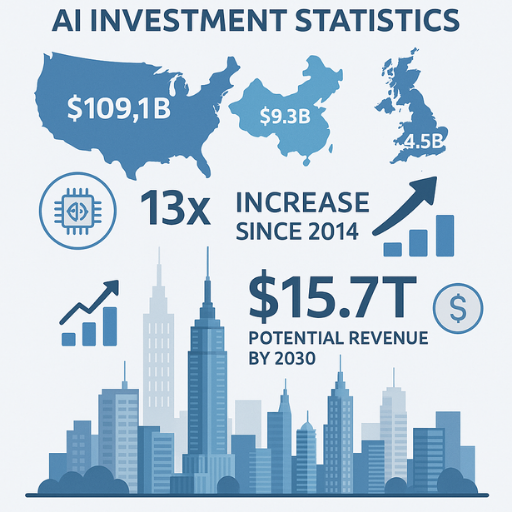 Đầu tư tư nhân vào AI đã tăng hơn 13 lần kể từ năm 2014, với Hoa Kỳ dẫn đầu về đầu tư AI tư nhân với 109.1 tỷ USD năm 2024, gần 12 lần cao hơn Trung Quốc (9.3 tỷ USD) và 24 lần Vương quốc Anh (4.5 tỷ USD). Khoảng cách này thậm chí còn rõ nét hơn trong lĩnh vực AI tạo sinh, nơi đầu tư của Hoa Kỳ vượt tổng đầu tư của Trung Quốc và Liên minh Châu Âu cộng với Vương quốc Anh là 25.4 tỷ USD.