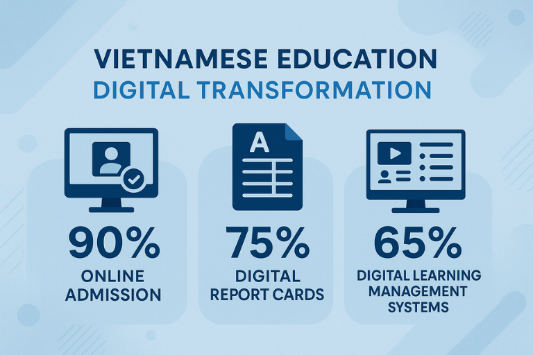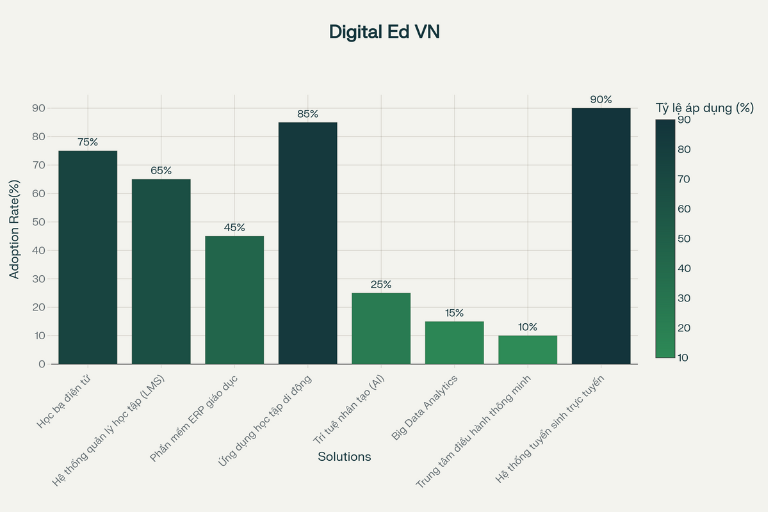 Theo số liệu thống kê từ các Sở Giáo dục và Đào tạo trên toàn quốc, tính đến năm 2025, có khoảng 90% các trường học đã triển khai hệ thống tuyển sinh trực tuyến, 75% đã áp dụng học bạ điện tử và 65% sử dụng hệ thống quản lý học tập số. Điều này cho thấy sự chuyển mình tích cực của ngành giáo dục trong việc ứng dụng công nghệ thông tin.