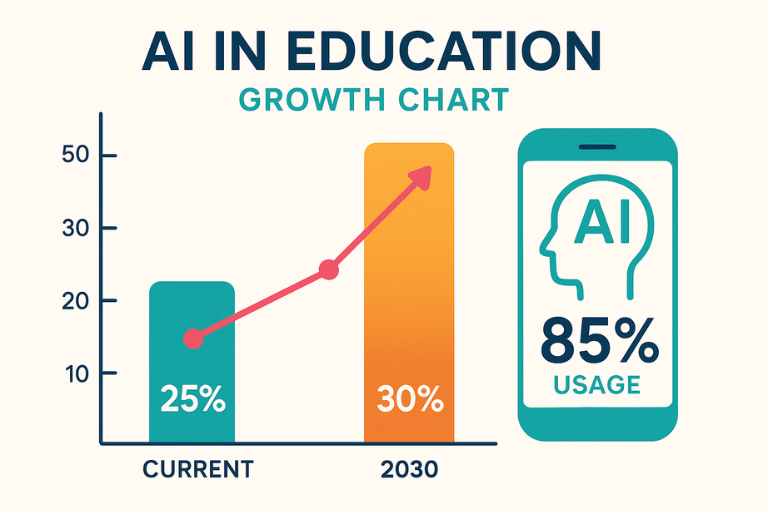 Mặc dù tỷ lệ áp dụng AI trong giáo dục hiện tại chỉ đạt khoảng 25%, nhưng tiềm năng phát triển trong giai đoạn 2025-2030 được dự báo sẽ tăng mạnh lên 85%. Các ứng dụng AI trong giáo dục bao gồm hệ thống chấm điểm tự động, phân tích hành vi học tập của học sinh, cá nhân hóa lộ trình học tập và hỗ trợ giáo viên trong việc thiết kế bài giảng.
