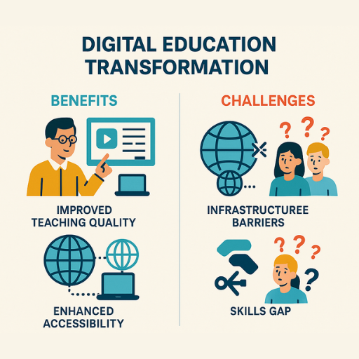 Chuyển đổi số đã mang lại những cải thiện đáng kể trong chất lượng dạy và học. Việc tích hợp công nghệ trong giáo dục có thể nâng cao đáng kể chất lượng giảng dạy và học tập. Các công cụ số như hệ thống quản lý học tập (LMS), nội dung đa phương tiện tương tác và công nghệ đánh giá đang chuyển đổi trải nghiệm giáo dục cho cả nhà giáo dục và học sinh. Các nền tảng LMS cho phép giáo viên tổ chức tài liệu khóa học, theo dõi tiến độ học sinh và tạo điều kiện giao tiếp một cách tập trung, từ đó hợp lý hóa quá trình giảng dạy.