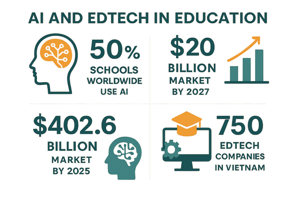 Trí tuệ nhân tạo đang trở thành một phần không thể thiếu trong lĩnh vực giáo dục, mang lại những giải pháp đổi mới và nâng cao chất lượng học tập. Theo thống kê, hơn 50% trường tiểu học, trung học và trường đại học trên thế giới hiện nay dựa vào AI để hỗ trợ quy trình hành chính, trong khi thị trường giáo dục AI toàn cầu được dự đoán sẽ vượt 20 tỷ USD vào năm 2027.