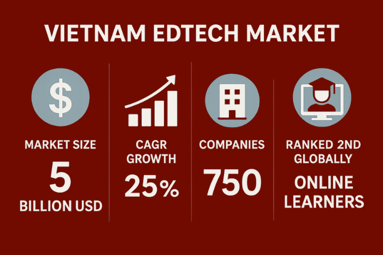 Với quy mô thị trường công nghệ giáo dục (EdTech) đạt khoảng 5 tỷ USD và tốc độ tăng trưởng kép hàng năm (CAGR) dự kiến 25%, Việt Nam đã vươn lên vị trí thứ 2 trên toàn thế giới về số người học trực tuyến miễn phí trong năm 2024. Đây không chỉ là con số ấn tượng mà còn phản ánh sự chuyển đổi mạnh mẽ trong nhận thức và hành vi học tập của người Việt Nam.