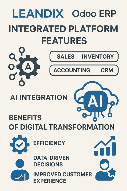 Một trong những điểm nổi bật của giải pháp Leandix là khả năng tích hợp AI vào hệ thống Odoo. Leandix AI không chỉ giúp tự động hóa các tác vụ quản trị mà còn cung cấp những phân tích thông minh để hỗ trợ ra quyết định.