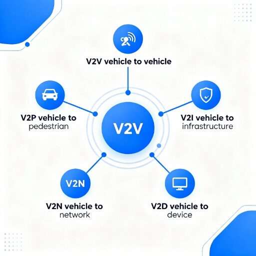 Hệ thống V2X bao gồm năm chế độ kết nối chính. Vehicle-to-Vehicle (V2V) cho phép các xe chia sẻ thông tin về tốc độ, vị trí và hướng đi để ngăn ngừa va chạm và cảnh báo điều kiện lái xe không an toàn. Vehicle-to-Infrastructure (V2I) kết nối xe với hạ tầng đường bộ như đèn giao thông và biển báo để tối ưu hóa lưu lượng và cung cấp thông tin theo thời gian thực. Vehicle-to-Pedestrian (V2P) nâng cao an toàn cho người đi bộ thông qua cảnh báo hai chiều giữa xe và người đi bộ. Vehicle-to-Network (V2N) giúp truy cập dịch vụ đám mây để cập nhật hướng dẫn và thông tin thời tiết. Cuối cùng, Vehicle-to-Device (V2D) cho phép tương tác với các thiết bị thông minh khác như điện thoại và hệ thống nhà thông minh.​