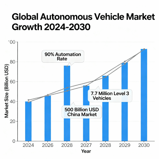 Thị trường xe tự lái toàn cầu đang bước vào giai đoạn tăng trưởng mạnh mẽ. Theo Precedence Research, thị trường ứng dụng AI trong giao thông vận tải dự kiến đạt 5,53 tỷ USD vào năm 2025, với tốc độ tăng trưởng kép hàng năm (CAGR) đạt khoảng 22,7% trong giai đoạn 2024-2034. Theo dự báo của McKinsey, Trung Quốc sẽ trở thành thị trường xe không người lái lớn nhất thế giới vào năm 2030, với doanh số bán xe mới và các dịch vụ di chuyển dự kiến vượt 500 tỷ USD.​