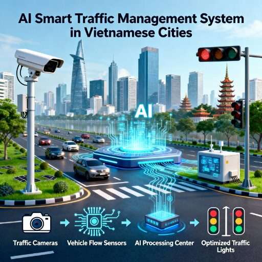 Việt Nam đang tích cực triển khai các giải pháp AI để giải quyết bài toán ùn tắc giao thông tại các đô thị lớn. Tại TP.HCM, Trung tâm Quản lý điều hành giao thông đô thị đã lắp đặt gần 100 cảm biến đo đếm lưu lượng phương tiện tại các đại lộ lớn như Võ Văn Kiệt, Mai Chí Thọ, Phạm Văn Đồng. Dữ liệu từ các cảm biến được AI thế hệ mới xử lý với khả năng tính toán lên tới 100.000 tỷ phép tính mỗi giây để phân tích mật độ phương tiện theo khung giờ và dự báo điểm ùn tắc.​
